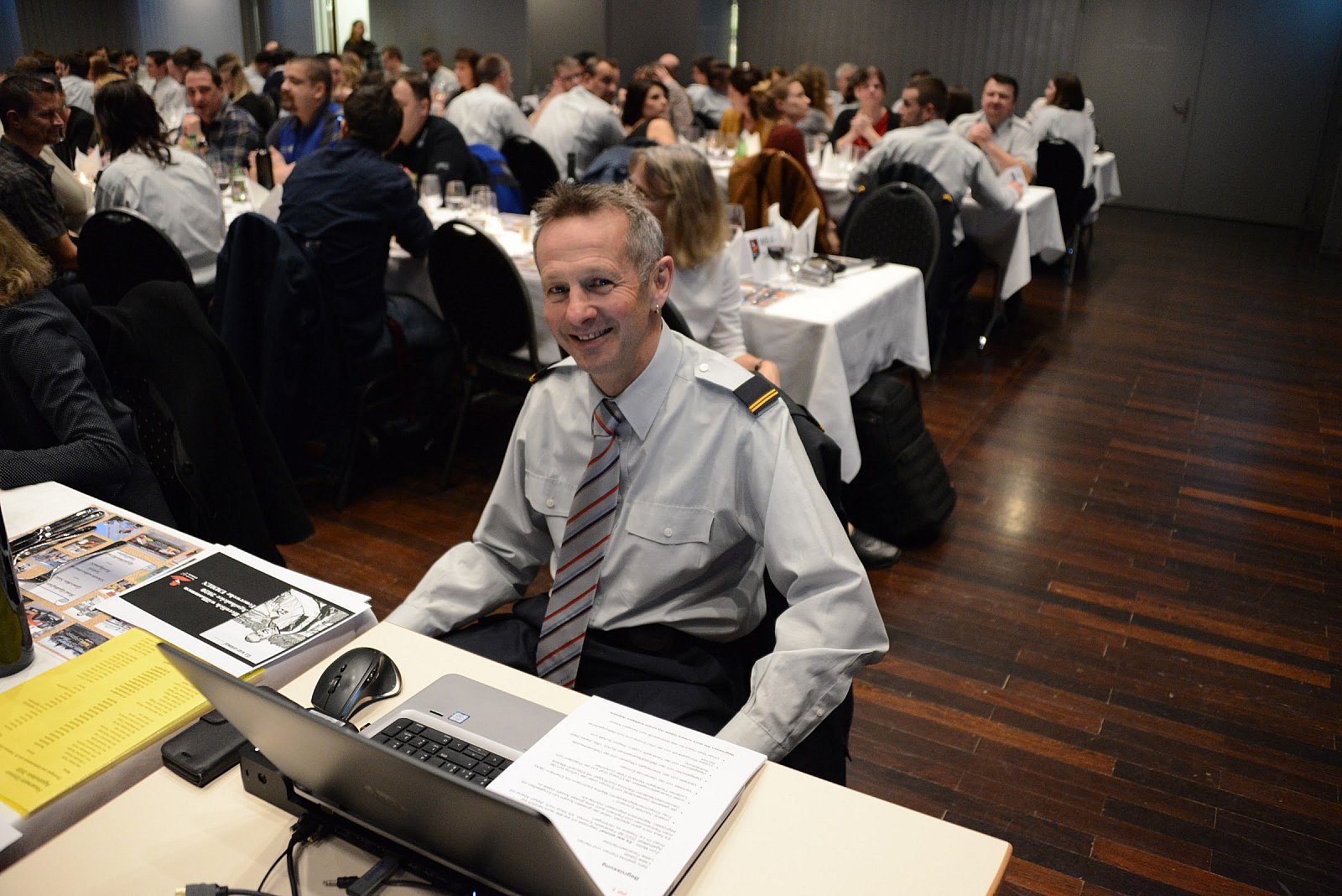 Um 18:30 Uhr eröffnete unser neuer Kommandant, Marco Lötscher, den offiziellen Teil. Zusammen mit Patrik Müller wird Rückblick gehalten und ein Ausblick gewährt. Viele Eingeteilte verliessen die Feuerwehr Emmen, aber ebenso viele Neue wurden herzlich aufgenommen.