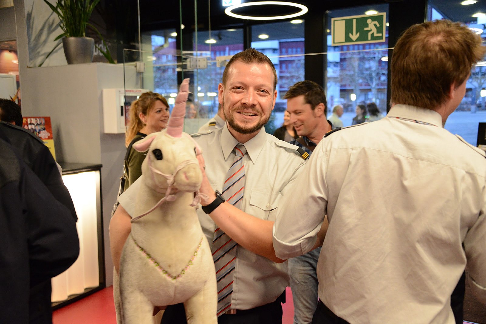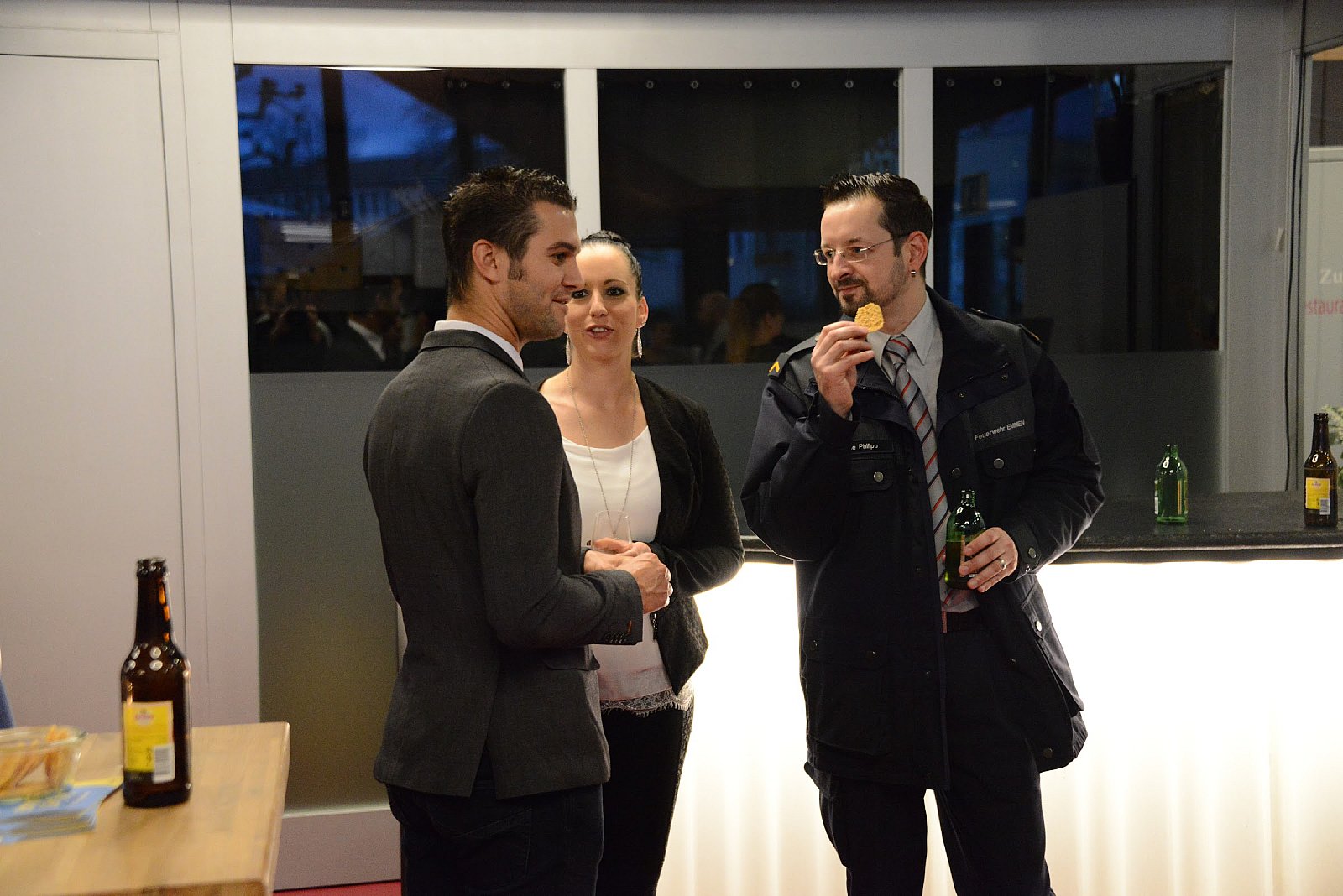 Aufgrund des diesjährigen Kommandowechsels wurden die Feuerwehr-Eingeteilten mit Partner/innen und die geladenen Gäste mit einem Apéro im Foyer des Le Théâtre willkommen geheissen.