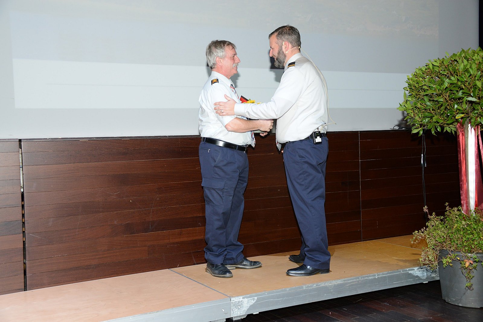 Weiter ging es mit den Beförderungen zum Korporal, zum Leutnant, Oberleutnant, Hauptmann und Major. Gespannt wartete man auf die Beförderungen zum Wachtmeister. Die immer sehr streng gehaltene Wahl durch die Feuerwehr Kommission hat auch dieses Jahr wieder neugierig gemacht. Wem gebührt die Ehre? Das auf der Folie ein falsches Abzeichen (Feldwebel) eingeblendet wurde, verkam glatt zur Nebensache.