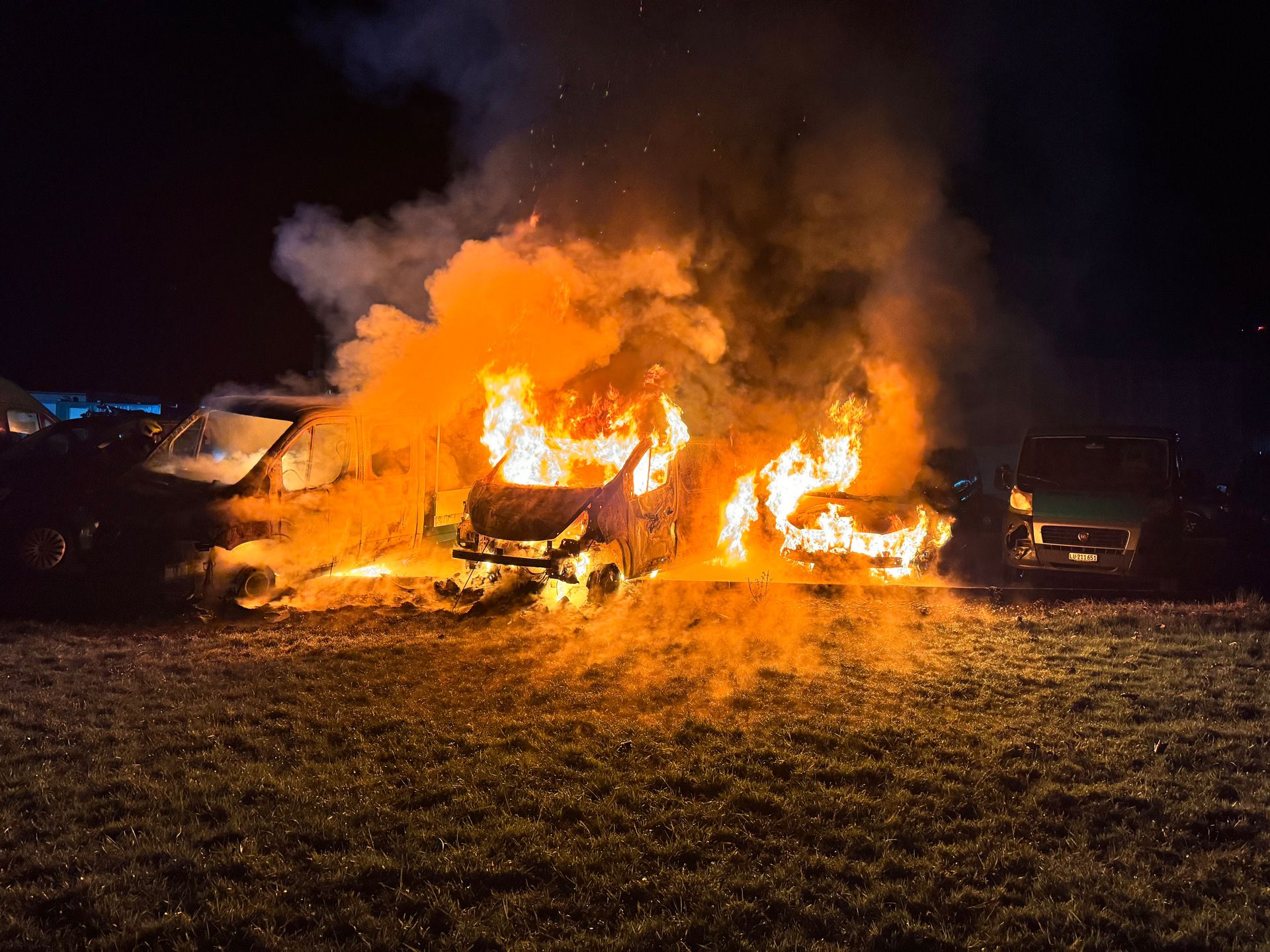 Beim Eintreffen der Einsatzkräfte standen bereits drei Lieferwagen in Vollbrand. Das Feuer konnte durch die Feuerwehr Emmen gelöscht werden – es wurde niemand verletzt.
