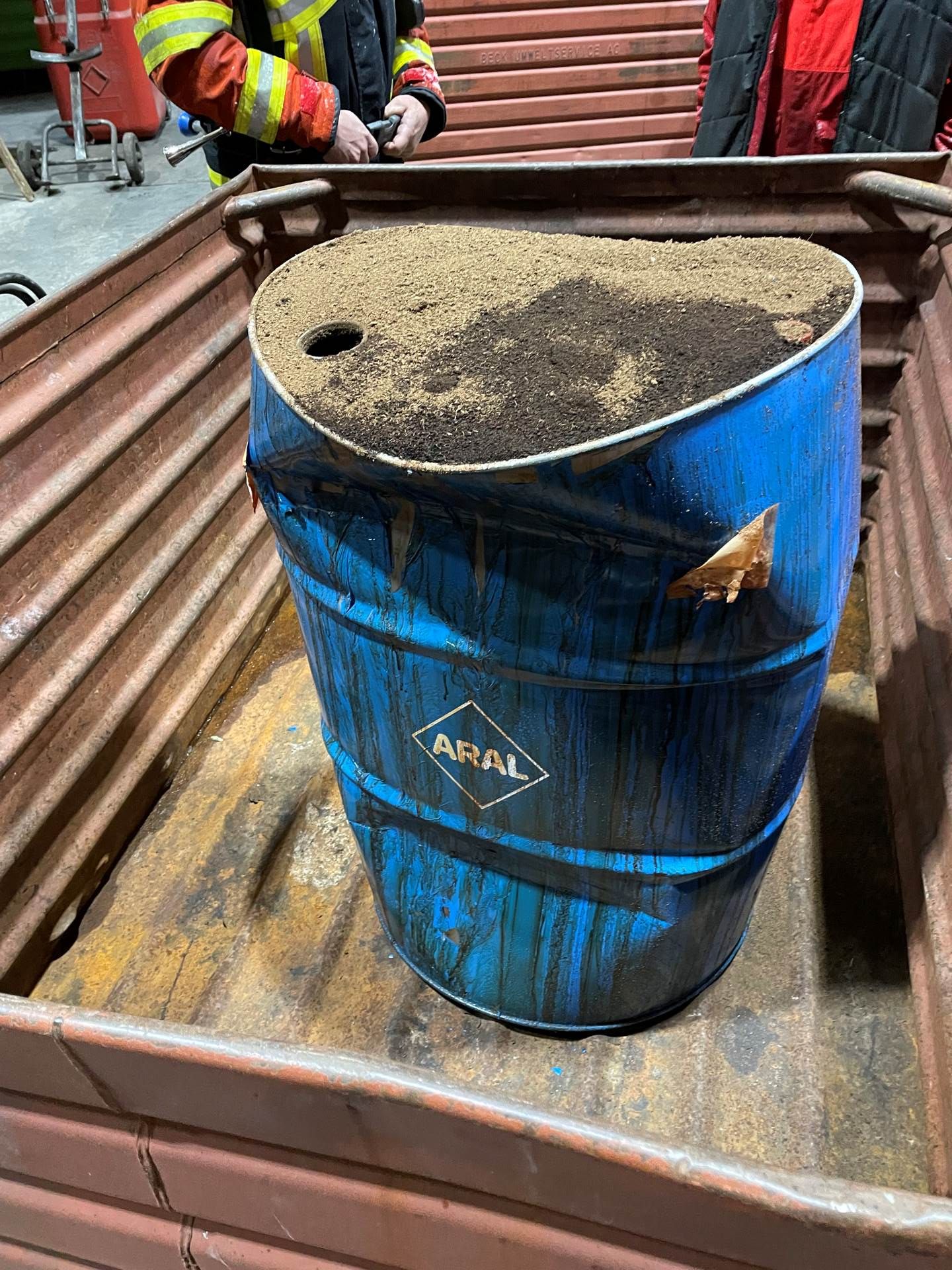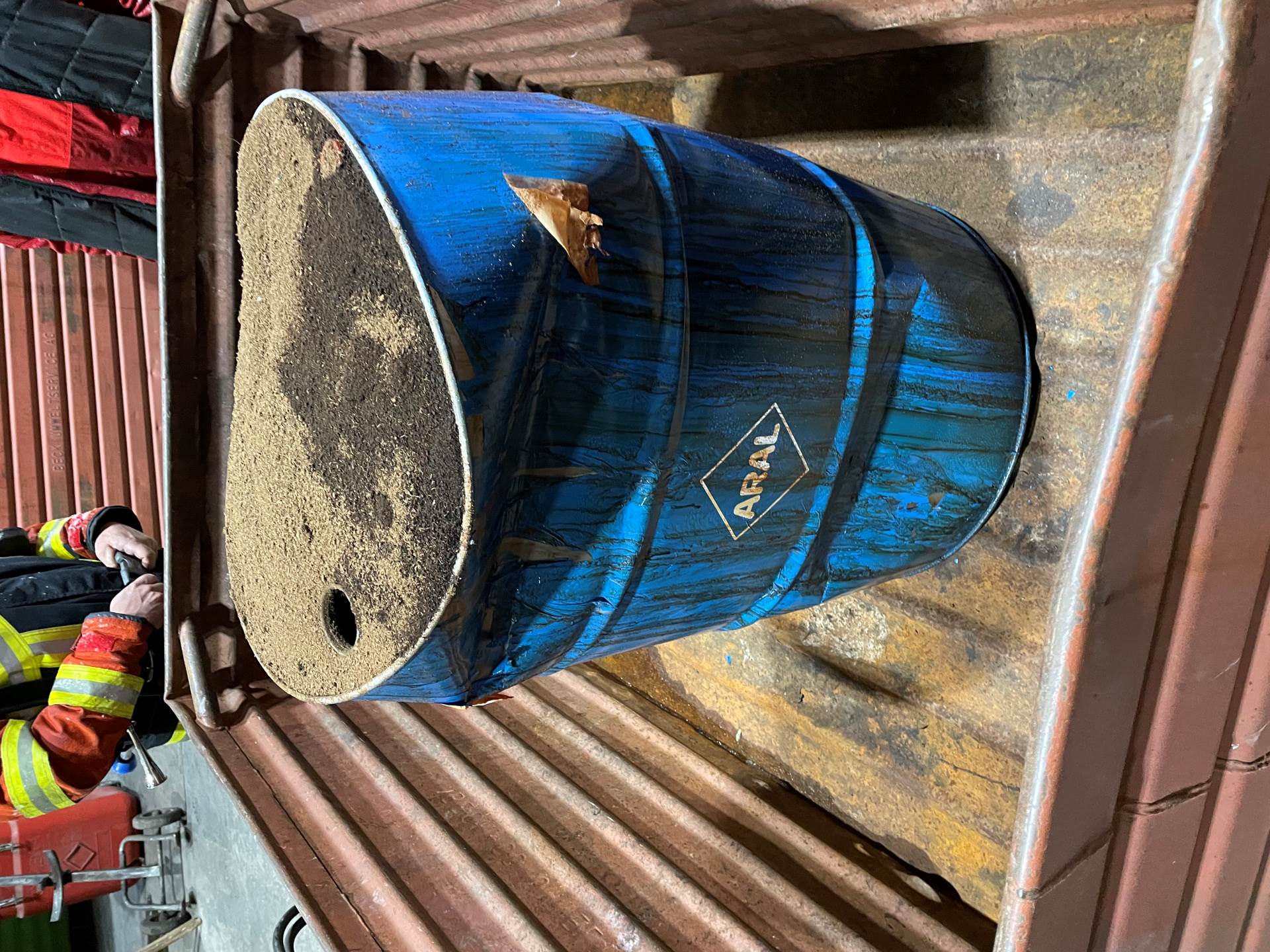Klärung wegen Brand von einem Fass mit Chemikalien